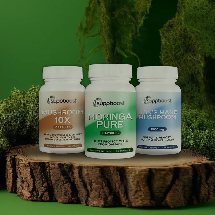 Suppboost promotes a diverse selection of natural superfood supplements, advocating for sustainable practices. We guarantee our customers receive dependable Superfood capsules and additional products infused with mushrooms, all extracted solely from 100% organic mushroom fruiting bodies and natural mycelium.